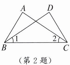 2. 如图,已知$\angle 1= \angle 2$,则下列条件中,不能使$\triangle ABC\cong \triangle DCB$成立的是( )