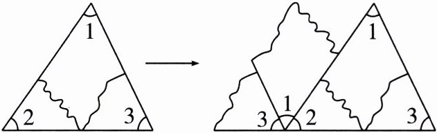 (2)剪拼法:将三个内角拼在一个顶点处,合起来形成一个平角.