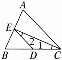 3. 如图,在$\triangle ABC$中,$CE平分\angle ACB$,$\angle 1= \angle 2$,若$\angle ACE = 23^{\circ}$,求$\angle EDC$的度数.