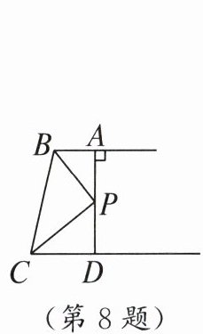 8. 如图,$AB// CD$,$BP和CP分别平分\angle ABC和\angle DCB$,$AD过点P$,且与$AB$垂直.若$AD = 8$,则点$P到BC$的距离是( )