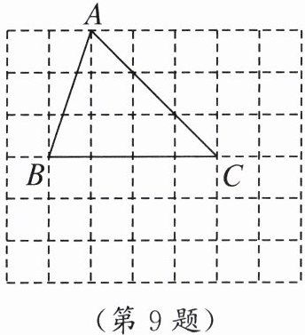 9. 如图,在一个正方形网格中,每个网格正方形的边长相等,我们把该网格中正方形的顶点称之为“好点”,$\triangle ABC$的三个顶点都在这个正方形网格的“好点”上,在这个正方形网格图中找一个“好点”$D$(点$D与点A$不重合),使得以$D$,$B$,$C为顶点的三角形与\triangle ABC$全等,则这样的“好点”$D$的个数为( )