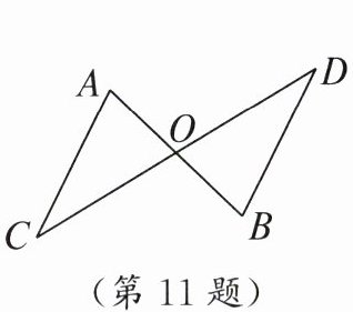 11. 如图,$AB$,$CD相交于点O$,$AO = OB$,观察图形,只需补充一个条件______,可得到$\triangle AOC\cong \triangle BOD$.