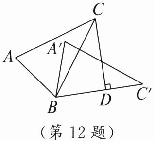 12. 如图,$\triangle ABC\cong \triangle A^{\prime}BC^{\prime}$,过点$C作CD\perp BC^{\prime}$,垂足为$D$,若$\angle ABA^{\prime}=55^{\circ}$,则$\angle BCD$的度数为______.