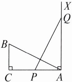 16. 如图,$\angle C = 90^{\circ}$,$AC = 10$,$BC = 5$,$AX\perp AC$,点$P和点Q同时从点A$出发,分别在线段$AC和射线AX$上运动,且$AB = PQ$(不考虑$PQ = 0$的情况),当点$P运动到AP = $______时,$\triangle ABC与\triangle APQ$全等.
