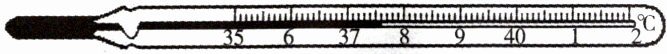 4. 如图所示,体温计的示数是______$^{\circ}C$。