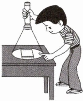 3. 如图所示,在较暗的房间内,小星把一块小平面镜粘在白纸上,平放在课桌上,让手电筒的光正对镜面照射,小星从侧面看____(选填“白纸”或“平面镜”)较亮,其发生的是____(选填“漫反射”或“镜面反射”)。