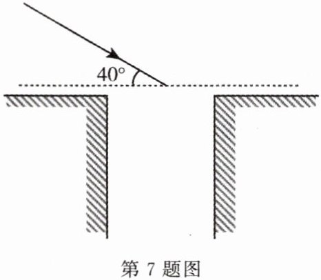 7. 如图所示,太阳光与水平面成40°夹角,某同学利用一块平面镜使此时的太阳光竖直射入井中。此时的反射角大小为____,请在图中画出平面镜的位置。
