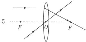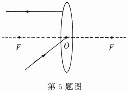 5. 如图所示,画出入射到凸透镜上的两条光线通过凸透镜后的折射光线。