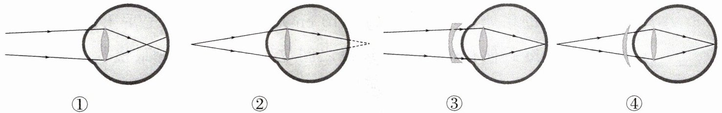 3. 智能手机给人们带来了许多便利,但长时间盯着手机屏幕,容易导致视力下降。如图所示,关于近视眼成因及其矫正的原理图正确的是( )