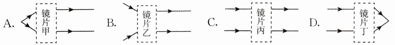 4. 小星长时间盯着手机屏幕,导致视力下降,患上了近视眼。现在有甲、乙、丙、丁四种镜片,如图是光照射到这四种镜片上产生的现象,他应该选择的矫正镜片是( )