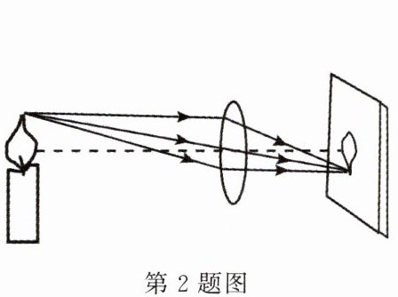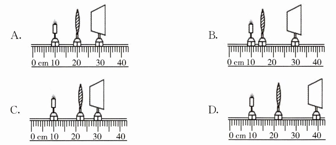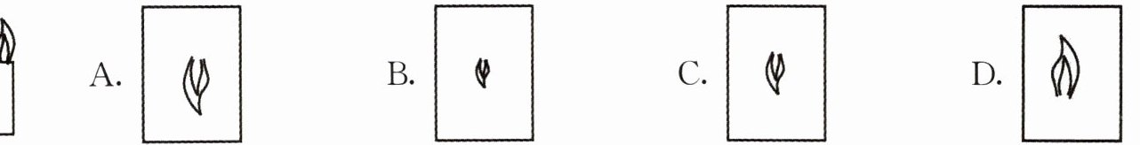 4. 如左下图所示是一支点燃的蜡烛,小湘在探究凸透镜成像规律的实验中,通过光屏承接该烛焰所成的清晰的像。其中不可能出现的是( )