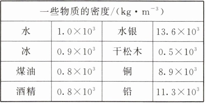 | 一些物质的密度$/(kg·m⁻^3) $|