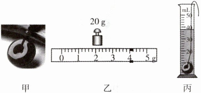 (4)先向量筒中加入30mL的水,将重新系好挂绳的吊坠轻轻放入量筒中,水面位置如图丙所示,则可计算出吊坠的密度为_________$g/cm^3。$