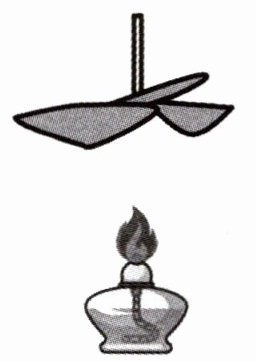 4. 做一个纸风车,如果把风车放在点燃的酒精灯上方,风车能转动起来,如图所示。这是因为点燃的酒精灯上方空气受热,热空气的密度____,热空气____(选填“上升”或“下降”)而形成气流,带动扇叶转起来;根据气体密度的这种变化规律,房间里的暖气一般都安装在窗户____(选填“上面”或“下面”)。