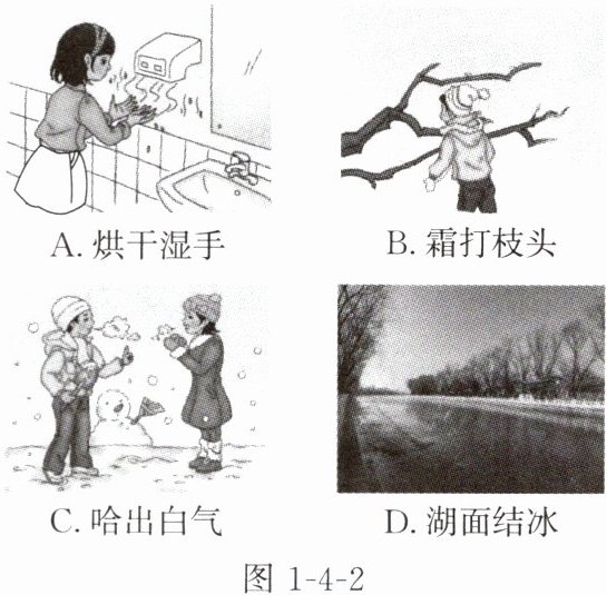 4. 如图 1 - 4 - 2 所示的物态变化属于凝华的是( )。