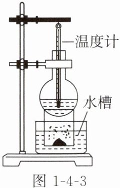 6. 如图 1 - 4 - 3 所示,将盛有少量冷水的烧瓶放在装有少量碘颗粒的烧杯口处,并将烧杯放在盛有热水的水槽中。不久会观察到烧杯内固态碘减少且出现紫色的碘蒸气,这是______(填物态变化名称)现象。过一会儿还可以观察到烧瓶底部附着少量针状的碘晶体,这是______(填物态变化名称)现象,同时烧瓶内水的温度______(选填“升高”或“降低”)。
