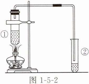 5. 图1-5-2是某同学在实践课中组装的一套模拟海水蒸馏的装置。用酒精灯给试管①中的海水加热,使海水沸腾,过一会儿,在试管②中玻璃管下端会出现______,这是采用了______的方法使水蒸气______(填物态变化名称),这个过程要______(选填“吸热”或“放热”)。