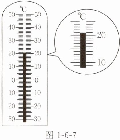 1. (湖北鄂州中考)妈妈对你说:“今天降温了,看看墙上挂的寒暑表,自己选择合适的衣服。”如图 1 - 6 - 7 所示,关于该寒暑表,下列说法正确的是( )。