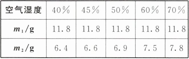 | 空气湿度 | $40\%$ | $45\%$ | $50\%$ | $60\%$ | $70\%$ |