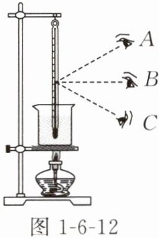 (1)实验时所用的温度计是根据液体____的性质制成的。读取温度值时,图 1 - 6 - 12 中读数方法正确的是____(选填“$A$”“$B$”或“$C$”)。