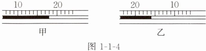 4. 图1-1-4是两支水平放置的温度计,且这两支温度计的两端都没有画全。甲的示数为____,乙的示数为____。