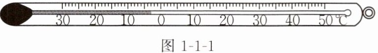 6. 使用温度计时,首先要观察它的量程和认清它的____。如图1-1-1所示温度计的量程是____,分度值是____,读数是____。