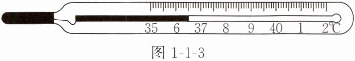 8. 如图1-1-3所示体温计的量程是____,分度值是____,读数是____℃。使用时,它____(选填“可以”或“不可以”)离开人体读数。