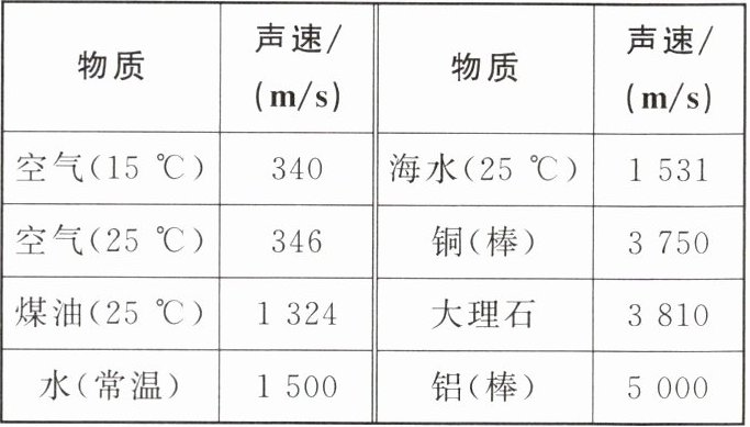 4. 下表中记录了几种物质中的声速,据此回答下列问题。