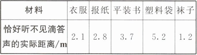 ②把闹钟放到一个鞋盒里,将衣服盖在鞋盒上方,然后逐渐远离盒子直到恰好听不见滴答声,记下此时人离盒子的距离。