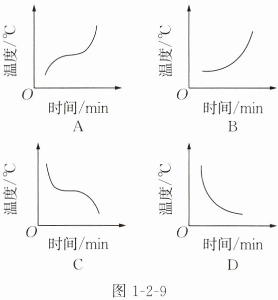 5. 现代建筑业出现一种新型材料,这种材料在低于 15℃时为固态,在 15℃时开始熔化,超过 40℃时完全熔化。把这种材料制成小颗粒,均匀混入水泥等材料中,制成地板或墙板。图 1-2-9 中能表示这种材料凝固过程的图像是( )。