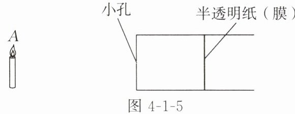 7. 小明同学用直径不同的纸筒制成如图4-1-5所示的装置做小孔成像实验,如果外筒左侧中央有一个很小的三角形小孔,点燃蜡烛并将其置于小孔前一段距离处,从贴在内筒左侧的半透明纸(膜)上能看到清晰的像。关于小孔成像,下列判断正确的是( )。