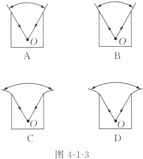 3. 如图4-1-3所示,枯井中的青蛙在井底O点“坐井观天”,能正确表示青蛙通过井口观察范围的光路图是( )。