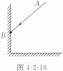 13. 【学科融合】自行车的尾部安装了一种塑料制成的反光镜,夜间骑车时,在后方车灯照射下,能把光线逆着原来方向返回。反光镜的结构如图 4-2-16 所示,两平面镜相互垂直,一条光线 AB 入射到其中一平面镜上。