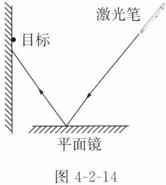 11. 如图 4-2-14 所示,激光通过平面镜反射打到墙壁上。为了射中目标,可进行如下操作: