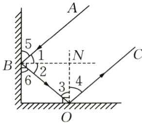 (2)证明:因为∠1=∠2,∠3=∠4(光的反射定律),所以∠1+∠4=∠2+∠3。因为NB⊥NO(两平面相互垂直,法线也相互垂直),所以∠2+∠3=90°,∠1+∠4=90°。