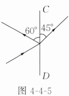 5. 如图 4 - 4 - 5 所示,光在玻璃和空气的界面 $CD$ 处同时发生了反射和折射,下列说法正确的是( )。