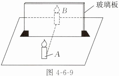 5. 在“探究平面镜成像的特点”实验中,用茶色玻璃板代替平面镜垂直放置于水平面上,如图4-6-9所示。下列叙述正确的是( )。