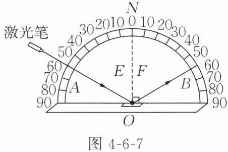 3. (浙江舟山中考)如图4-6-7所示,小舟利用平面镜研究光的反射定律,下列说法错误的是( )。