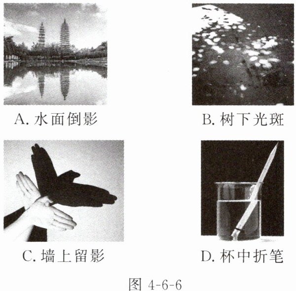 1. (2024·安徽中考)如图4-6-6所示的现象中,由光的反射形成的是( )。
