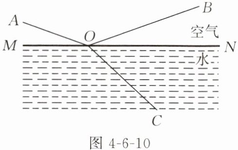 6. (北京中考)一束单色光从空气斜射入水中的情景如图4-6-10所示,下列说法正确的是( )。