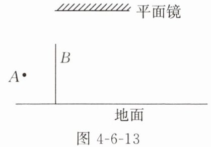 12. (黑龙江大庆中考)如图4-6-13所示,A为暗室中的点光源,B为不透光薄板,B与上方水平放置的平面镜左边缘对齐,请作出B右侧水平地面被光照亮的区域左右边界。(只考虑直接经平面镜到达地面的光线)