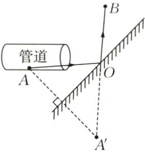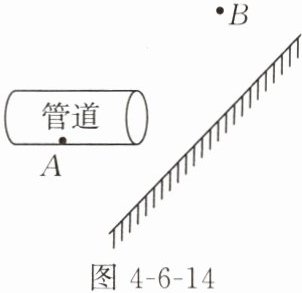 13. (辽宁丹东中考)如图4-6-14所示,管道内A处有一只正在发光的小灯泡,小潘的眼睛在B处看到了平面镜中小灯泡的像,请画出小潘看到小灯泡的像的光路图。