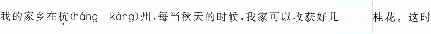 我的家乡在杭(háng kàng)州,每当秋天的时候,我家可以收获好几桂花。这时就会用桂花做给我吃,还会泡桂花给我喝,而且那时,整个村子都