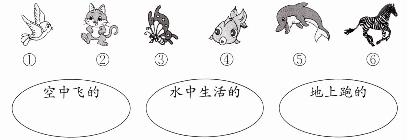 3. 按要求把下列动物分成三类,填上合适的序号。