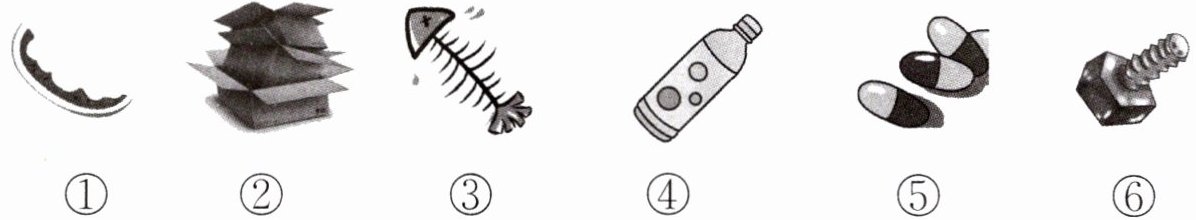 6. (数学应用)给垃圾分类,填上合适的序号。
