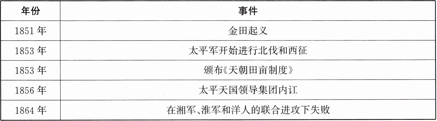 7. 某同学在学习太平天国运动时列了一个大事年表。给这个大事年表拟一个标题,恰当的是( )。