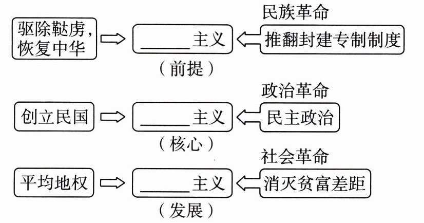 驱除鞑虏,恢复中华 → [民族]主义 → 推翻封建专制制度(民族革命,前提)