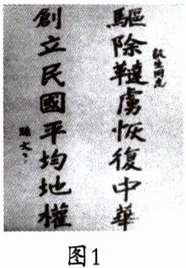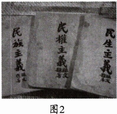 (3)图1是中国同盟会的政治纲领,图2是孙中山提出的“三民主义”,是孙中山在《民报》发刊词中,对中国同盟会的政治纲领的阐发。“驱除鞑虏,恢复中华”即民族主义;“创立民国”即民权主义;“平均地权”即民生主义。