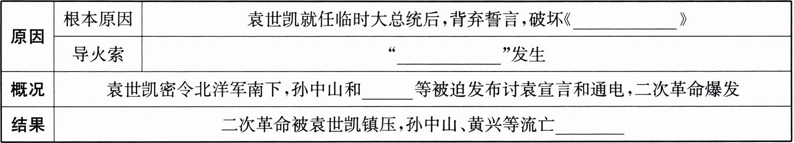 |结果|二次革命被袁世凯镇压,孙中山、黄兴等流亡______|