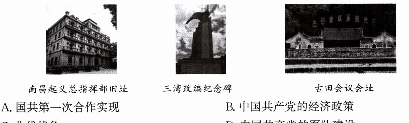 2. 1927年8月,周恩来等人领导革命军队在南昌发动武装起义;1927年9月,毛泽东在湘赣边界打出“工农革命军”的旗帜,举行秋收起义。这是( )。